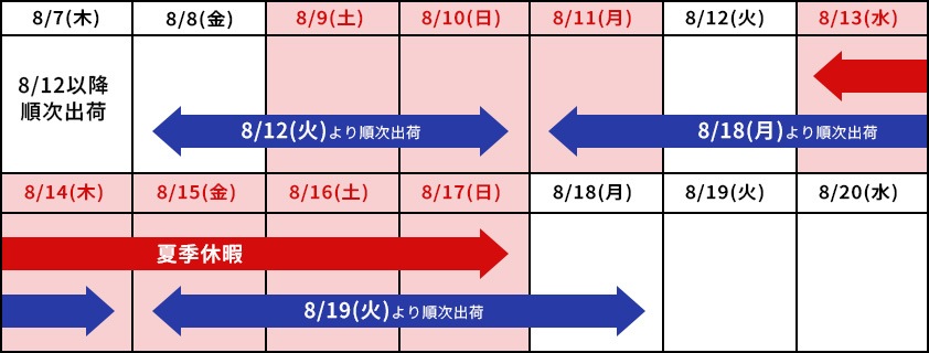 夏季休業に伴う出荷日スケジュールの変更について